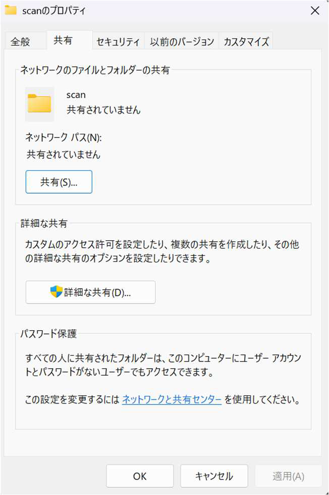 ・作成した scan フォルダーを 1 回左クリックし選択し、右クリックし「プロパティ」を開きます。